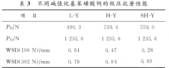 測定油樣L-Y,H-Y,SH-Y的極壓抗磨性能,結果如表3所示。