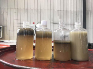 由于使用過程中處理不當,客戶送過來的油品經過取樣后,發現一些桶中含水分比較多,一些桶中乳化已經比較嚴重。