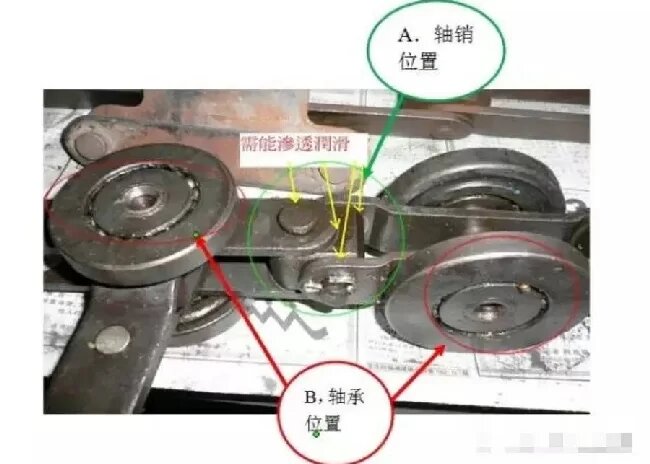 鏈條的潤滑關鍵點為鏈轂與鏈軸之間,這也是最易發生磨損的部位,它會導致鏈條拉長;根據鏈條制造商的規定,當鏈節的拆除長度超過總長的5%時鏈條報廢;無正確潤滑的鏈條壽命不超5年,潤滑良好的鏈條可工作15~20年。