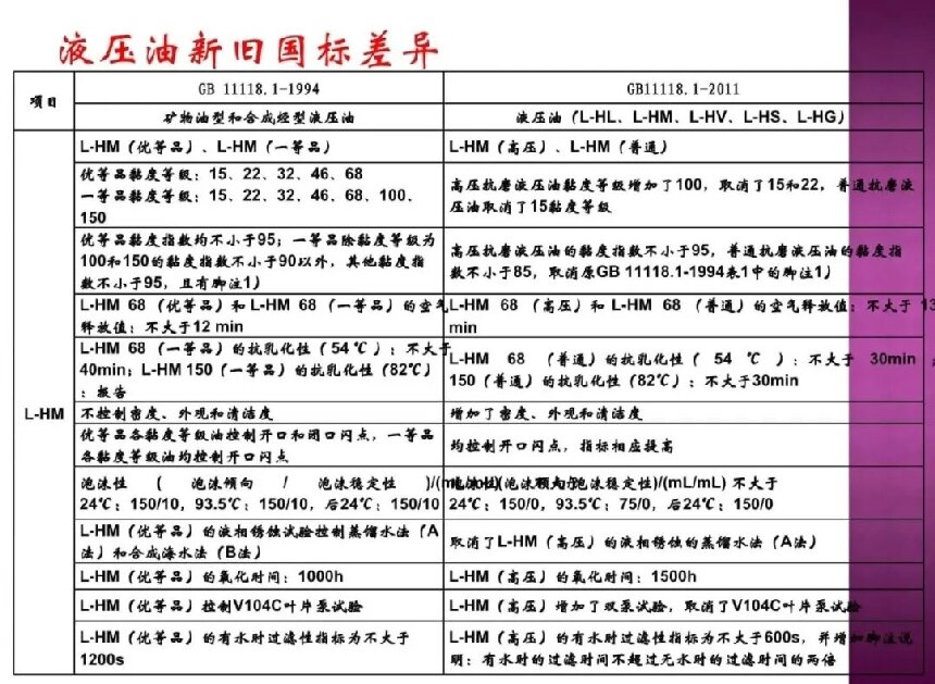 國外比較有代表性的礦油型液壓油國家標準有德國的DIN51524(Ⅰ、Ⅱ、Ⅲ),分類為HL、HLP和HVLP(HL、HM、和HV),法國的NFE48603,它們代表抗磨液壓油的一般水平。