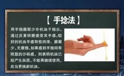 將潤滑油捻在大拇指與食指之間反復研磨,較好的潤滑油有潤滑性、磨屑少、無摩擦;若感到手指之間有砂粒之類較大摩擦感,則表明潤滑油內雜質多,不能再用,應更換新潤滑油。