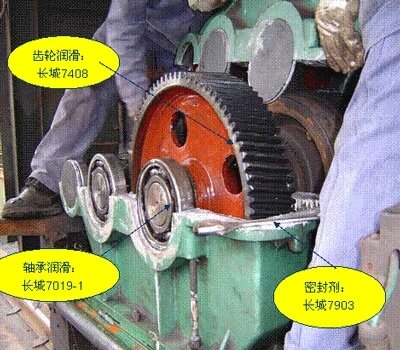 這里的“7408”指長城7408半流體潤滑脂,“7019”指長城7019-1高溫潤滑脂,“7903”指長城7903密封脂。半流體齒輪潤滑脂是一種介于流體潤滑油與塑性潤滑脂之間的一種特殊的潤滑劑,兼有兩者的使用性能優點。使用半流體潤滑脂,可以降低對復雜密封的要求、簡化設備的維修、防止泄漏、延長維修周期、節省潤滑劑。此外,半流體潤滑脂在金屬表面形成油膜較厚,因而能更好地潤滑維護設備并起到較好的防銹功能,有效地降低噪音、振動和沖擊負荷。