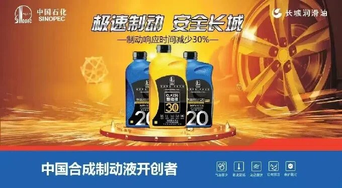 在制動液領域,中國石化潤滑油有限公司一直致力于推動中國制動液的技術升級和產品升級,形成了DOT3、DOT4、DOT5、Class6四個國家標準等級的產品線,并積極參與制動液相關國家標準的制定,是中國機動車輛制動液GB12981-2012標準起草單位;參與Bosch組織的全球聯合研發項目方法全球循環比對,所生產的合成制動液通過了美國交通運輸部注冊,獲得日本工業JIS K2233認證證書、印度ARAI認證,是第一個被指定應用于國家重大活動和賽車的制動液,為新能源領域領銜新勢力及國內三十余家汽車企業提供了裝填和售后服務用油。